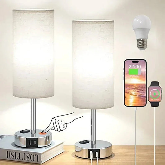 SkandiCharge - Skandinavische Tischlampe aus Stoff
